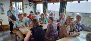 Bei schönem Wetter fuhren wir mit dem Brumann-Car richtung Willisau. Alles schön auf den Landstrassen und nicht auf der Autobahn. Rechtzeitig angekommen haben sich ein paar einzelne zum Apero niedergelassen. Ausserdem hat sich noch Richard Urfer zu uns gesellt, er ist direkt mit dem Postauto angefahren.